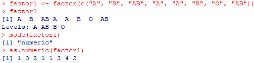 as.numeric이란 함수를 사용하여 숫자로 변환시켜보면 factor1에 있던 값들이 levels의 index로 변하는 것을 볼 수 있습니다.