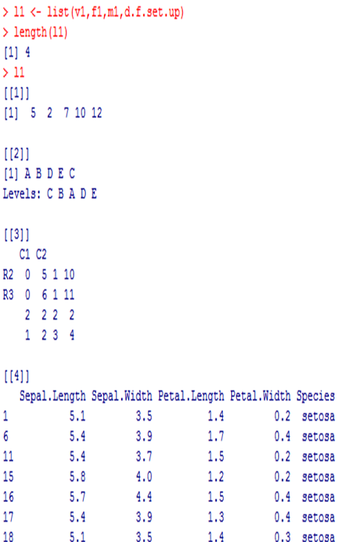 마지막으로 list의 경우 list(vector, factor, matrix, data.frame,...) 로 만들 수 있습니다.